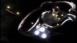 The Andromeda rescues a defenseless ship from former Commonwealth fighters. The occupants are an ambassador and his pilot, returning to Arkology from successful peace negotiations with the Magog on board the World-Ship.